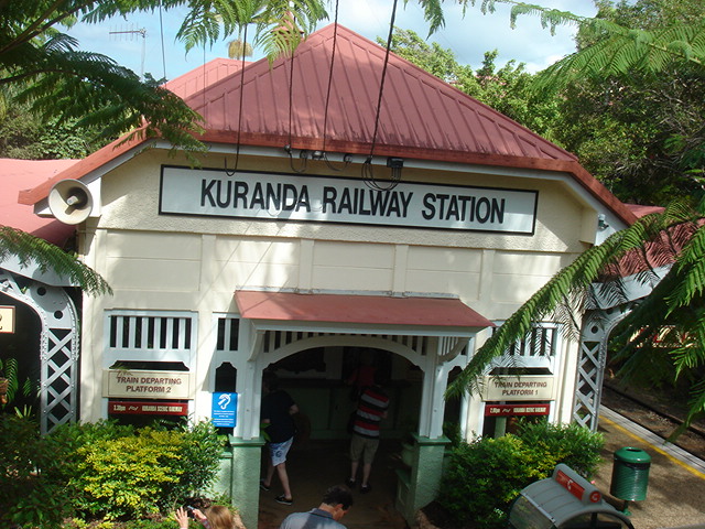 朝7時、空港ロビーでJTBの現地係りの人と会い、他のグループの人と共に、まず荷物をホテルへ運ぶため、送迎バス(といってもマイクロバス)へ。荷物はどこに入れるのかと思ったら、後ろに小さいタイヤのついた箱みたいのがついてて、そこへ入れるようになっていた…えっ 牽引ですかその後、JTBで一通りの説明を受け、いざOPツアーへGO!この日のツアーは、「キュランダ観光 1日コース」9時頃ホテルへ迎えのバスが来て、その後、スカイレール乗り場へ。(ロープウェイみたいなもの)スカイレールから見る景色は、もう絶景!まさに、大自然の中にいるって感じで、最高デシタ