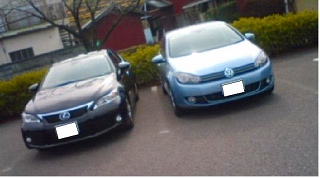 土曜日にやってきました。彼のCT200h★せっかくなのでうちのゴルフと記念撮影。車のサイズはほぼ一緒です。レクサスって車種名が数字で呼びにくいので納車の待ち時間の間に車と相談。。。。。。無口なのでムックに決定☆前から見ると普通のレクサスって感じですが、後ろがかわいい。写真を撮ってみて思ったのは、ゴルフのほうがやっぱりかわいい、スッキリしてる感じですかね。さて、これから春です、交互にお出かけしないとね~。あ~、花粉やら黄砂やらでゴルフも洗車しないとだなー。今週は木曜日から約半年ぶりに潜りに行ってきます。新しいって、春って感じですね。
