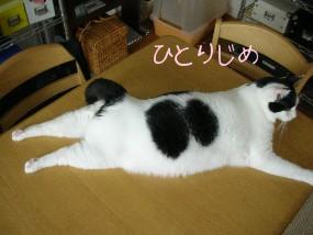 リンリン、本日は そしていつものご開脚~!でうつぶせになっていたので身長を測ろうとしたら 特にウエストを測ろうとすると 失礼しました。では・・・ そこでご飯に夢中になってるすきに して、そのサイズは・・・・ 身長は頭から足先までだいたい85センチウエスト60センチ・・・・。猫のメタボは何センチからだろう・・。お気に召しましたら押してくださいまし人気blogランキング
