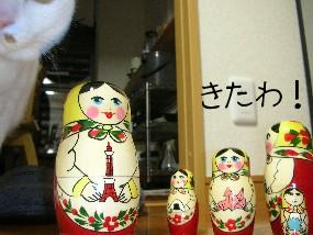 ソファに寝ながらテレビを見てたらリンリンが珍しく私の背後に現れた。 ソファの背もたれにどっかりのリンリン。嬉しくなったのでリンリンのほうに向き直って見つめあってみたら・・・・。 リンリンの素直なリアクション。 と、すごく迷惑そうな顔されたうえその後リンリンはすぐに・・・・ 露骨に しかも 追い討ちをかけるシャチョー お気に召しましたら押してくださいまし人気blogランキング 話変わって新潟と言えば・・・新潟空港(?)。新潟空港と言えばロシア便。ロシアといえばマトリョーシカ(無理やり) と、いうことで最近 私と友人の間で熱いのです。熱いので買っちゃいました。 本当は某人気ブログの記事で欲しくなって買ったんですけどね。。。 超飽きっぽい人間なんでいつまで続くか分からないけどしばらく日記に登場すると思います・・・。