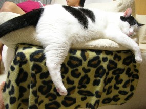 新潟には確実に秋がきたようで街を歩くおされガールは皆ブーツ。 秋の高い空を見ていると旅に出たくなるんですけど思い立ったらすぐ!とはいかないのが現実。 そんな中、私が日記リンクしてる超元気な埼玉の叔母が1週間で熊本、鹿児島、屋久島と動きまわってるようでうらやましいかぎりです。→40女のあくなき挑戦! この叔母の息子がかなりの鉄道おたくなんですけど、多分大きくなったらいわゆる『鉄っちゃん』とか『鉄』って呼ばれるようになるんでしょうね・・・・。 で、叔母が息子に『ママの人生って何?』って聞かれたらしいんですよ・・・・。すごい質問ですよね。なんて答えたらいいのか・・・。私なら『ネコ』かな。 親戚ブログ紹介も終えたところで今日のシャチョーとブチョー。 相変わらずゲーマーなシャチョーの隣で終わるのを待ってるブチョー。力尽きて寝てしまいそう・・・・。 ちなみにこの豹柄は雑誌のオマケ。リンリンの引っかき防止のためにかけてるだけです・・・・。 『いえ、ありません・・・。』 お気に召しましたら押してくださいまし人気blogランキング