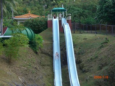 さぁ、グァム滞在3日目この日は、朝一で、予約していた「エステ」に、義妹と一緒に行ってきましたその間、男性陣と子供たちは またビーチへ行きました無料送迎付きだったので、安心して女二人で行くことができました私たちが行ったのは「スパ・パリ」「マンダラ・スパ」と どちらにしようか迷ったのですが、マンダラ・スパは、評価でも賛否両論があって、迷った結果、とても評価の良い「スパ・バリ」に決めました好きなオイルを選んで、全身のボディマッサージグァム滞在一日目、二日目ともに かなり歩いて疲れていたので、ふくらはぎのマッサージなんかは極楽でした香りも良く、私は背中のマッサージが とても気持ち良かったのですが、やはり、それぞれツボが違うのね~。。。義妹は、手のひらのマッサージが一番気持ち良かった~と言っていましたよエステが終わったあとは、全身しっとり今回は、パパたちに子供たちを見てもらっていたので、パパたちの負担にならないように60分コースにしたんだけど、いつかまた機会があったら、もう少し長いコースにしたいなぁ~最後に、サービスで、ちょっと甘い「しょうが湯」みたいな飲み物が出されました。美味しいものではなかったけど、エステ後の体が 更にポカポカとして、体に良さそうな感じでしたエステから戻ると、ちょうどお昼時。この日の朝食は、手軽におなじみ「マック」でやはり食べなれた味。美味しかった昼食のあとは、一度部屋に戻り、パパと子供たちはビーチの砂をシャワーで流して、私は水着に着替えて、プール「ターザ」へ行きました私たちの滞在していた「グァム・プラザ・ホテル」内に「ターザ」はあり、子供たちは、このプールで遊ぶ事をとても楽しみにしていましたプール内は、グァムっぽく、緑があふれていて、11本のスライダーや、計14本のアトラクション、そして、子供も楽しめる流れるプールなどがあり、大人も子供もおおはしゃぎ遊ぶことに夢中で、ここでの写真をあまり撮れなかったのが心残り。。。 写真は、高さ20メートル、傾斜45度の猛烈なスピードで落ちるスライダー写真で滑り落ちているのが ウチのパパです降りてきた瞬間、ちょっと焦った顔をしていました(笑)私も、大きな浮き輪に乗っかって滑り落ちるスライダーに挑戦最初、怖いなぁ。。。なんて思ったのだけど、一度やったら 面白くて、長女、次女を抱いてそれぞれ一回ずつ、義妹を引き連れての計3回そして、調子に乗って、全長95メートルの暗闇の洞窟を滑り落ちる「ブラックホール」なるスライダーにも挑戦してしまいました怖かったけど、面白かった子供たちはスライダーは、一回ずつで、「怖いからもうやらない」と言っていましたが、流れるプールが気に入り、ずーーーーっと遊んでいました義弟夫婦のべビちゃんも、海の時は まだ水慣れしていなくて泣いてばかりでしたが、この日のプールは、自分の手でパシャパシャと水を跳ねかえらせ、顔に水がかかっても泣くこともなく、ニコニコと楽しそうでした私は、ある程度遊んだら、あまりの日差しの強さに 背中が痛いのと、日に照らされすぎて、頭がクラクラしてきたので、パパに一度 部屋に戻ってもいいかと聞いたら、このまま自分が子供たちにつきあうから、もうプールに戻ってこなくても大丈夫だよ。ということで、お言葉に甘えて 一人部屋へシャワーを浴びて、少し横になって、更に時間があったので、帰り支度なんかも余裕でできました結局、パパと子供たちは、プールが閉まるぎりぎりまで遊んできて、部屋へ戻ってきたのが16時半頃12時にはプールにいたので、4時間以上もプールにいたことになりますグァムの滞在も、最終日ということで、少し休んでから すぐに、お買いもの&夕食へ。この日のお買いものは、お土産などで買い忘れたものを買ったり、自分の欲しい小物なんかをチラリと見に行ったりしましたそして、夕食は、ステーキのお店「アウトバック」へ行きました。義弟ファミリーは、もう こちらの料理に期待できないということで、無難に「カプリチョーザ」へ行きたいということだったので、この日の夕食は別行動。「カプリチョーザ」なら、こちらでも いつでも行くことができるので、私たちは最後までチャレンジャーで結果は・・・当たりっっっグァム滞在中、食べたショップさんの中で、ここの食事が一番美味しかった私は わからない選手だったけど、私たちの席のななめ後ろに Jリーガーのファミリーも座っていましたパパが見つけました食べた中から何点か紹介しますね エビー香辛料が効いていて、美味しかった パパが注文したステーキミディアムです。柔らかくて、美味しかったよ~シーザーサラダなんかも、チーズの味がしっかりしていて、とても美味でした これは、サービスでついてきたパンこれがね~、温かくて柔らかくて、チョコ味で、とぉ~~~~っても美味しかったの添えてあるバターも、柔らかいフワッとしたバターで、香りも良く、