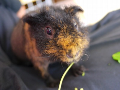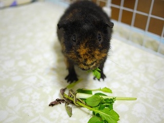 一番食い付きがいいのはみつば!これは買ってきたみつばだけど、家の庭にも自生しているみつばがたくさん♪るいが家に来るとは思ってもみなかったから、 夏が終わるころに、生え過ぎている三つ葉を全部抜いちゃった。今は小さな小さな芽しかないけどもうすぐたくさん食べられるよ♪ ルイがサークルで遊んでいるときに私も入ると、おひざに乗ってきてくれるように♪おやつをくれると思ってるみたいで探しまくってます☆おやつがないと気付くと、サッサとケージに戻っちゃう(泣)