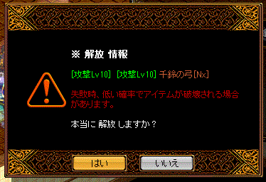 最近リアル優先してRSかけら期限を2キャラも過ぎていました反省して以後注意します!で、話は鏡7回目なんですが解除しようと思ったのに悪魔選んじゃってあーーーーーーーーーーーーーーーーーー!!!ってなって鏡をとりにいきました!今回挑戦する品はこちら↓↓↓↓↓↓↓↓↓↓↓↓↓↓↓↓↓↓↓↓Tテスラでございます!正直お金貯める為に解除しようとしたのに鏡もらっちゃって更にお金がなくなったのでここは成功しないとまずい!成功したあああああああああああああああああああああ!!!ドラツイ戦士君がやってくれましたよさて弓を探しましょう・・!