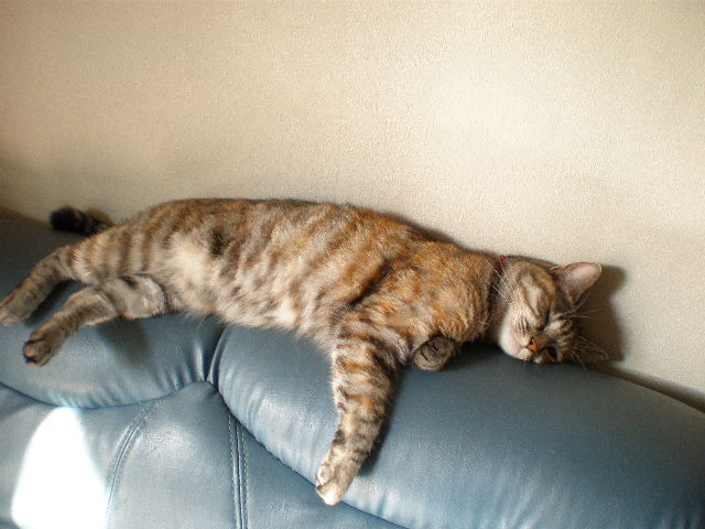 きょうは寒かった~~~。相変わらず5時起きの私にはとてもつらい季節です。週末も寒いのかな。今週の土曜は息子のがっこの三者面談だ・・・でも少し楽しみはね・・・帰りのショッピングセンターの中にマッサージやさんがあるのを最近発見♪肩を重点にもんでもらうとそりゃ、天国、天国。女性のスタッフなのですが「あなた、その指でりんごもぶち割れるでしょ?」というくらいの指力♪ついていきますよ~~~。とても気持ちがいいのだけど、欠点はそのあと1時間くらいかけて家に帰らなくちゃいけないんだよね。せっかくほぐされた肩が。。。。かっちこち(涙)猫に肩コリはあるのか?