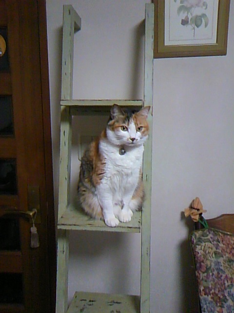 今日はアンティークのお店のセールに行ってきました。このお店とても大きくて、関東最大のお店です。ちょっと前にテレビでやってた「官僚たちの夏」のセットで使用された家具もいっぱいあるみたいでとても見るだけでも楽しいお店です。今日の戦利品。梯子?お花とか本とか飾っても素敵♪注意:猫は売り物ではありません!