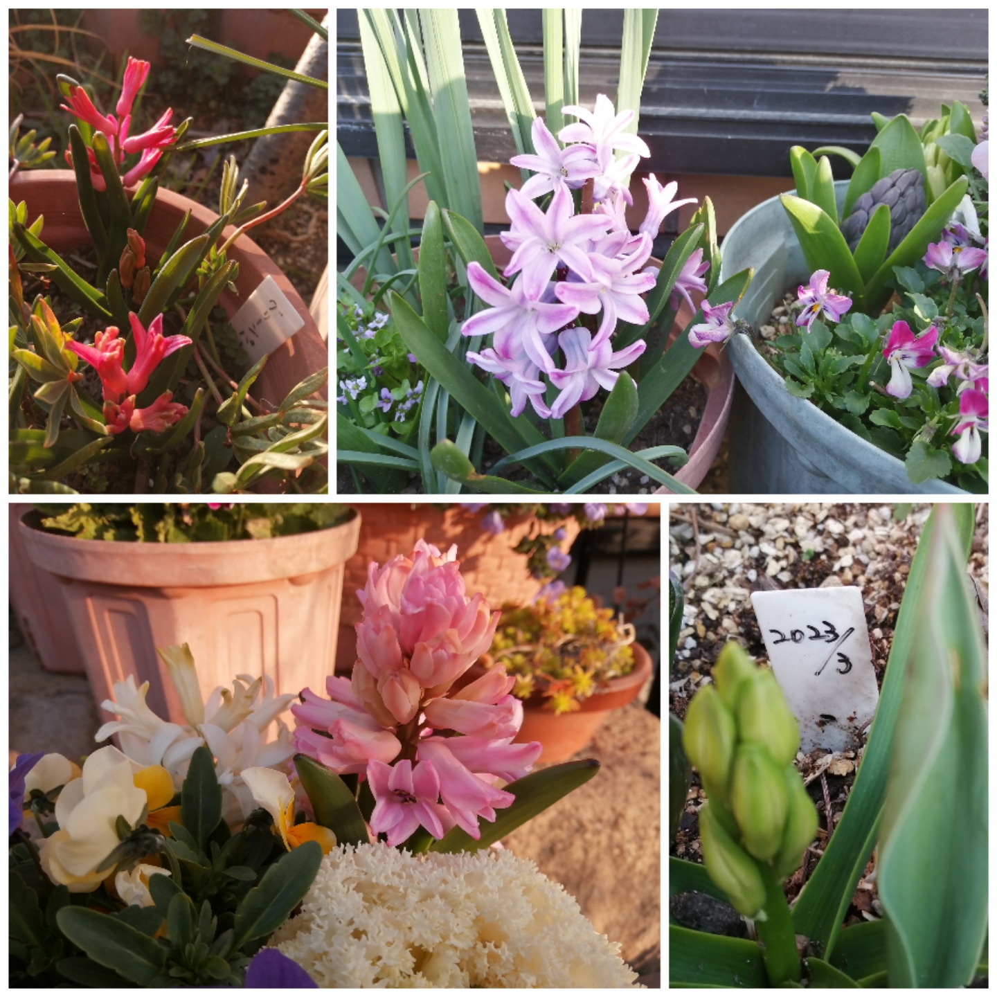 3月2日(日)あっという間に3月になったような気がします(^_-)-☆明日は、ひな祭り…今年は、二階から移動させた荷物がいっぱいでお雛様も飾れない…やっぱりさびしいね早く、リフォーム開始してほしいけど息子に任せているので口は出さない…と決めている(*´σー`)エヘヘ寒波の後、少し暖かくなったなと思っていたらヒヤシンスの根がどんどん成長してお花の方も伸びてきてつぼみも見えてきたよ戸外でも植木鉢に寄せ植えにした球根も顔を出してつぼみも見えてきてワクワク…そして昨年までの球根をそのままにしていたら芽が出て小さいながらつぼみもちゃんと咲いてくれるかなぁ…ちょっと気温があがってくると春に向かって植物が動き出すお花たち強いね