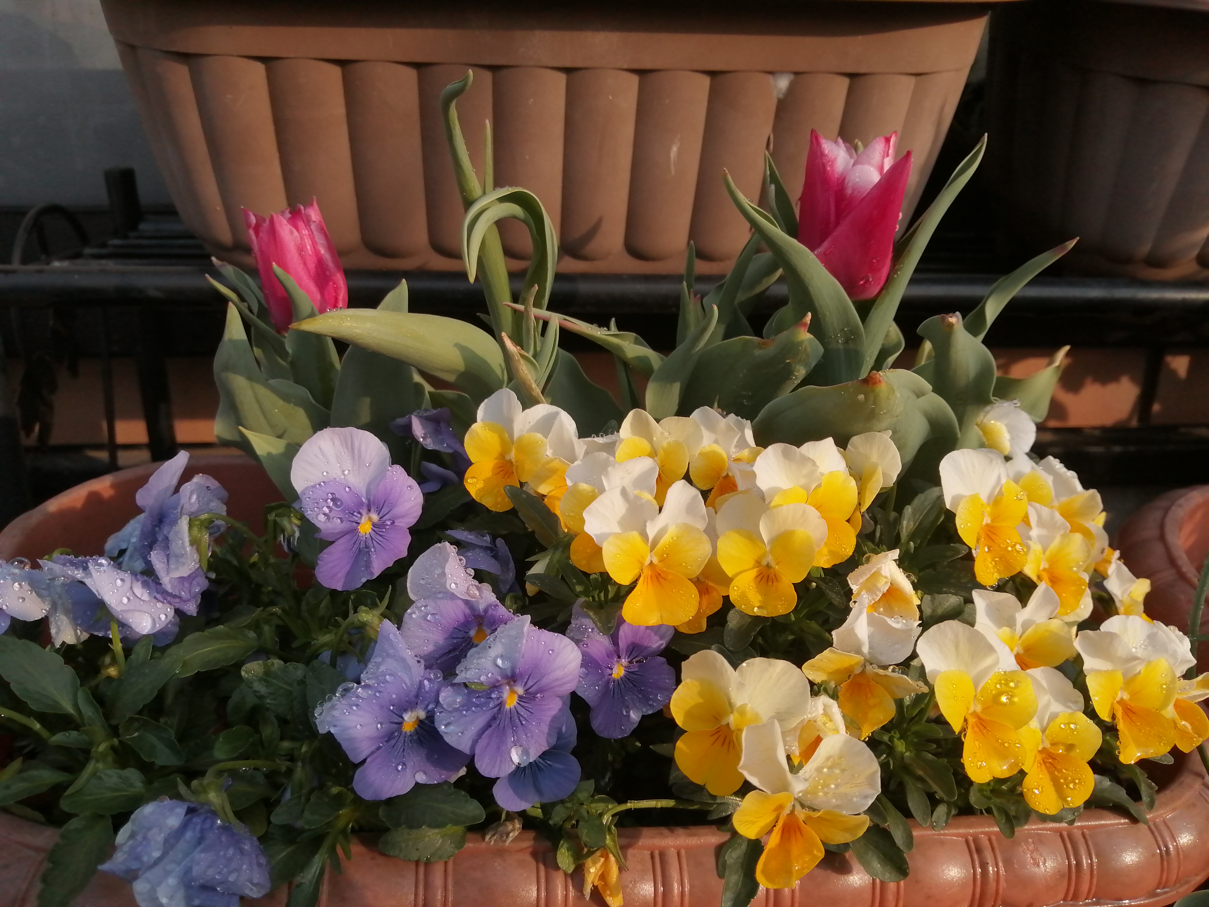 3月28日(金)昨日は、土砂降りの雨が降ったのでお花もグターと倒れてしまってます(>_<)そんな中で、チューリップが咲いているのをみっけラマンチャワインレッドに白の縁取りの二色咲き2023年の福袋かななのでちょっと小さめで可愛く咲きましたっワールドファボリット朱赤に黄色の細いラインが入る花は大きく草丈も高い一重咲きだそうです(^_-)-☆この子は葉っぱが大きくなってしまったね手前のまるっこいつぼみはなんだろう…楽しみぃ~♩