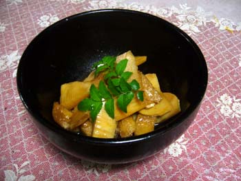 掘りたての筍を買いに行く時間がないけど並んでるのを見ると食べたくなり、スーパーで買ってみました。糠もたっぷりいれて長めに茹でたが、エグミが残ってしまって残念。スーパーに並ぶまで時間がかかってるんでしょうね。それでも初物が食卓に上るのは嬉しいですね。 連休には是非買いに行かなきゃ。筍の土佐煮エグミが有るので少し濃い目に味付けし、鰹節をたっぷり入れて油揚げと煮ました。庭の木の芽も添えていい香りです。キャベツのトマトスープトマトが少し柔らかくなってしまったので、キャベツと一緒に煮込んでスープにしました。他に玉ねぎ、舞茸、人参、ウインナーを味出しに入れてブイヨンでトロトロになるまで煮込んだので美味しかったですよ。鰹のオカカ焼き生の鰹が私は食べられないのでこの料理は定番になりました。生鰹を一口大の切り身にし、ポン酢につけておく。オリーブ油を引き微塵きりニンニクを入れて鰹を両面さっと火を通す。そこに漬け汁を入れて、オカカをたっぷりまぶしいれて出来上がり。お皿に盛ったら好みでポン酢をかけても良い。シュウマイシュウマイは殆ど手作りします。蓮根の微塵きりやきのこ類、コーン、グリンピース、海老などその時々冷蔵庫に有ったものを混ぜます。 今回は何も混ぜずシンプルに豚挽き肉だけのシュウマイです。蒸すときに、キャベツやレタスの外側の葉を敷くとくっつかず綺麗に蒸しあがります。マグロと昆布の煮物お弁当や朝ごはんのおともに合うので時折作ります。マグロは血合いなどが並んでるところに、切り落とした塊があると必ず買ってきます。出し昆布を適当な大きさに切って圧力鍋で煮ておき、マグロを入れてさらににこみます。他に小さな切り落としばかりの時はフレークにします。血合いは湯がいてワンコのごはんに。シーチキンポテトサラダ手をかけたくないときはポテトを蒸して潰し、シーチキンときゅうりの塩もみしたものを混ぜ、マヨネーズに芥子を混ぜてあえます。