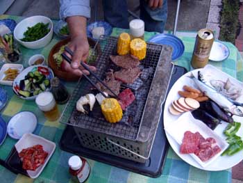慌しく連休を向かえ、さて8日も何も考えてなくて、結局片付けばかりしていました。冬の間に溜まったメタボが凄い、いい加減みっともないのでダイエットを始めました。私の場合、一駅ぐらいは必ず歩いているし、ワンコの散歩とで2kmは毎日歩いてます。でも太ってしまう、原因は甘いものと揚げ物が原因でしょうね。それでキャベツダイエットを始めました。我が家のワンコのダイエットにキャベツは大活躍しているので、ワンコと一緒に。食事の前にたっぷりのキャベツを食べ、普通の食事を量を控えめにして食べる。てきめんに体重の変化はあるけれど、ビールを飲んでしまうと戻りますね。ビールは止めても、甘いものはストレスと疲れ解消に少しだけ食べています。今のところ順調にお腹周りがすっきりし始めています。さてどうなることか、もちろん運動は欠かさずたんぱく質もちゃんと摂取してと!連休中に庭でのBBQジジババ3人では量はこんなものです。高いお肉を200gしか買わないのに余りました。 筍入り肉団子の酢豚筍を細かく刻んで肉団子に混ぜ油で揚げたものを酢豚にして見ました。食感が良くて美味しかったですよ。茄子とエシャロットのほうば味噌炒め義弟が作ったエシャロットを沢山頂いたが、生でそんなに食べられないそこで茄子と一緒に炒めほうば味噌で和えて見ました。ねぎより優しい味。鶏とかぼちゃのオレンジ焼き薄切りの鶏肉に塩こしょうし、玉ねぎのスライス、かぼちゃ、鶏と並べ間と上にオレンジの輪切りを並べて、オリーブ油をかけ、ローズマリーを載せて200℃のオーブンで焼いただけです。酢の物、おひたしキャベツ入り炒り豆腐キャベツの外側の硬い葉を茹でて細かく切ったものを、炒り豆腐と一緒に出汁と薄味で煮てみました。最後に溶き卵を回して。口ざわりは悪くなく美味しかったですよ。木の芽のコンソメブイヨンで玉ねぎ、シメジをよく煮てコンソメにし仕上げに山椒の若葉をたっぷり入れました。シメジの味がよく出て山椒の葉と合いますね。ミートローフのあんかけ前日大きなミートローフ(枝豆入り)を焼いたので残りの半分を次の日にもやしで甘酢アンを作りかけてみました。胡瓜とかにかまの酢の物トマトとほうれん草のサラダほうれん草を入れるときはイタリアンドレッシングが合いますね。ジャーマンポテトオムレツ久々にじゃが芋たっぷりのオムレツを焼きました。海老春巻き海老、にら、もやしで作った春巻きは海老がプリプリで美味しかった。