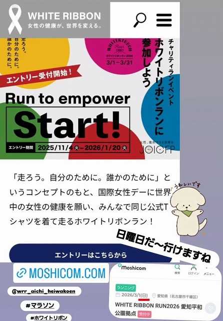 毎年オンライン参加なんですが2026年は日曜開催なので現地に行ける~~~みなさんも一緒にいかがっですか~ ホワイトリボンラン 毎度ありがとうございますまた今日もぽちっとお願いしますにほんブログ村にほんブログ村
