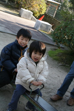 の年末のある日、じじばばと妹一家&我が家の総勢10人で近所の温泉へ行って参りました。その前に動物園へ従兄弟が帰省中は兄弟が入れ替わります。気の合う同士。甥っ子長男くんとウチの次男。 ウチの長男と甥っ子次男くん。 動物園でなぜかシーソー。やっぱり北極熊?白熊?は寒くても水の中。ブルブル。この二人、動物園を回る間中、手をつないで歩いてました。残り二人は思うままにバラバラにブラブラと(笑)個性が出ます。そして温泉へ長男、夕飯前に湯あたりしてダウン。あとの3人は元気にパチリ。両親の部屋で夕食を。配膳のおばちゃんが写り込んでますが・・・。なんとこの部屋、二間続きで20畳以上ありました。この部屋だけでみんな泊まれたのにな。もったいないので、長男はじじばばと寝ましたよ。この前日、私は短大時代のメンバーで忘年会フルメンバーだと8人ですが、あいにく2名欠席の6人で。みんな主婦になっても細々とピアノの先生をやっていたり、バリバリで生徒さんたくさん持っている独身のお友達もいます。ピアノに関わってないのは私だけですが、不思議と後悔はありません。なぜでしょう??でも、個人だと生徒が少ないので、生徒の発表会をこのメンバーの内4人だったかな?でそれぞれの生徒を集めて合同でやってるのは楽しそうだな~と思いました。久しぶりに地元の夜の街へ出ました(笑)30日からは旦那の実家へ帰省してました。またまた途中の温泉で待ち合わせ。1泊してからオウチへ帰省。温泉三昧の年末でしたよ。そしてお正月は旦那の生きがいの福袋購入が。もちろん早起きして行くのは旦那だけ(笑)私は興味なし。好きな物だけを手にしたいので。元旦はスポーツ店の福袋3つ。旦那と私に”アンダーアーマー”のウェアが入ってるものを。実はイナバさんが夫婦揃って好きで、NHKの特集でイナバさんもアンダーアーマーのウェアを着てランニングしていたのを見て、それ以来旦那は益々このスポーツウェアにハマってます(笑)かなり影響されやすい性格です。それと長男にNIKEのものを。2日のデパート初売りでは目新しく、初めて”afternoon tea”の福袋をゲットしてきてくれました。1万円だったので、かなりたくさん入ってましたが・・・・。来年は買わないかな。2000円もする手帳が入ってましたが、私の好みでなく、手帳も使わないので、「この手帳かわい~」と言う義姉に譲りました。・・・・・・・・・・・・・・・・・・・・・・・・・・・・・・・・・・・・・・・・・・・・・・・・・・・・・・・・・・・・・・・・・・・・・・・・・・で、残り数日の冬休み。久々に家で昼食を作りました。子供達と私の3人分。年末に届いてたARABIA KOKO ディーププレート使用。私はオーバルプレートよりこっちのほうが使いやすいです。一番の理由はオーバルは食洗機のピンに合わないことかな。初使いはかぼちゃのスープをクリスマスの時に両親を招いた時でした。やっぱり器が素敵だと単なるかぼちゃスープやナポリタンでもおいしそうに見えるのです。買ってよかった~~。長男と次男の誕生日の時は出張で不在だったので、旦那はクリスマスのときにやっと久々にホールケーキにありつけました(笑)そして夕飯は、実家で行方不明になって1年以上?経ってやっと発見されたこのレシピ本の中から”豚のさっぱりおろし煮”と”きのこのバターきんぴら”を。見かけはイマイチですが、おいしかったですプレートの真ん中と右のカップに入ってるのがソレ。説明しないとわからないのがツライですが(笑)冬休みも今日で最後です。まだ宿題に追われてる長男です。今日は監禁するわよ。 ←ポチっとお願いいたします。