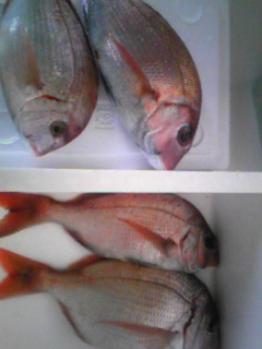 昨日、義父(じいちゃん)から「鯛が釣れたから送ったので今日届くよ~」と電話がありました。自分の釣り船を持ってるほどの釣り好きで、道具もすごく整理整頓されていて本職か!?と思うほど。でもカナヅチ(笑)午後遅く無事に鯛が到着。鯛が4匹。実家にもおすそ分けしてと言われてたので、魚屋さんに持ち込んでどう捌いてもらおうか相談したら「意外に取れるトコ少ないから全部お刺身でいいかも」と言われたのでそのとおりに。これは旦那抜きの3人分夕食。ワラビは右側のヤツ。おどろどろしくなりました(笑)長男しか食べなかった。受け取ったお刺身は二人分×3パックにされていました。ちなみに捌き代?は500円ほど。そのうち1パックとアラ半分は実家へお届け。写真も1パック二人分で女子供3人で食べて、残り1パックは旦那が帰ってきてから。と、思ってたら次男が「お刺身おかわりもってきて~」と言ったので仕方なく1列ほど後から出しました。しかも二人ともわさびもイッチョ前につけて食べるのです。辛いのに信じられない!!そのくせ次男は歯磨き粉は大人用は駄目なのです。長男はもう大人用ですが。刺身のツマはなんとなくいつも手をつけないのですが、気が付いたら次男がツマも全部食べてた!で、昨日の昼食も幼稚園は今週一杯午前保育なので二人分。前日の夜は長男のリクエストでオムレツだったのですが、まだ具が余ってたので次の日のお昼はオムライスに変身。ワンプレートで済むし~。はやく一人でテキトーお昼が食べたいわ。あと二日。