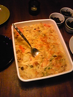 浅型Lでグラタンを作ってみました!使用用途に4,5人用のグラタン皿にとも書いてあったので前からコレを使って作ってみたかったのです。今日は買い物しないで家にある材料で作ったので組み合わせも??な感じです。横に見えるのはひじきの煮物(笑)いつのまにか長男はひじきの煮物が好きじゃなくなってます。離乳食時代はよ~く食べてたのになあ。半分しか食べなかった。かわりに離乳食時代にはひじきがキライだった次男が大好物になっていておかわりまでしました。幼稚園の給食では「きんぴらごぼうをおかわりしました。」と月末の給食に関する報告のお手紙に書いてあり、好きだったことが判明!ささがきにするのが面倒で我が家ではきんぴらごぼうは滅多に登場させてなかったのです。家でも作ってみるとやっぱりおかわり。きんぴらごぼう相当好きらしい(笑)毎月「何でも残さず食べました。豆の煮物は苦手なようです。ピーマンも苦手なようですが頑張って食べました」など苦手な食材も一応食べてる様子。でも家では食べません~。絶対に!!(笑)トマト嫌いは小さい頃からなのですが、それも「残しました」と書かれてないので食べてるのか!?信じられない。苦手かな~と思われる食材でも一応次男のお皿に盛りますが、トマトだけはいつもスルーします。口もつけないので。いつかは食べれる日が来るでしょう。私もピーマンが駄目だったけどいつの間にか食べてるし。夕飯の支度をしてから、牛乳やパンを切らしてたので六時半過ぎにスーパーへ行ってみました。本当の目的はお肉半額まとめ買い→2,3日分冷凍(笑)でしたが遅かった!今日「上沼恵美子のおしゃべりクッキング」で”豚肩ロース”を使ったメニューだったので豚肉コーナーに一目散に向かったのだけど賞味期限がまだ先の肉しか残ってなかったデス。仕方なく、子供のおやつや切らしてるものやアイスクリームという余計なものまで買って帰りました。せっかく行ったのに収穫なしだったわ~。
