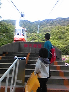 に乗るのかも思い出せないほど、久しぶりに乗るロープウェイ。たぶんココのロープウェイに子供たちと一緒に乗るのは初めてかな?二人とも山頂公園でソリをする気満々。午後1時半くらいに来たのだけど、写真の下りのロープウェイはギューギュー満員で下りてきました。今から私達が乗る上りは、我が家ともう一家族のみのガラガラ状態。5,6分で到着。車だと15分くらいかかるかな。山頂はヒトだらけ。子供たちウヨウヨ。そういえば旦那は今日からG.Wに入りました。もしや16連休にする?とヒヤヒヤしておりましたが(笑)今は忙しいらしく4/30と5/1に有給をとっただけであとはカレンダー通り。6日までの8連休です。3日午後遅くから旦那の実家に帰省しま~す。買い物するぞー!ココより都会なので。それ以外は旅行の予定はなしです。