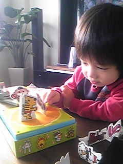 次男と幼稚園で貰ってきた「えとの12りきしとんとんかみずもう」をしながら待ってましたよ。