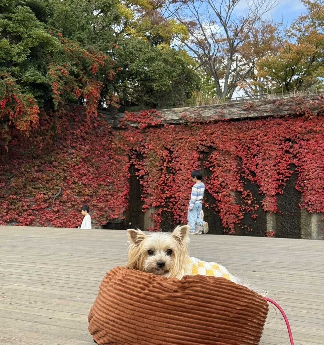 今日はとってもいい天気です。近くの山へススキを見に行ってきました。車で山へ行く途中のことです。空から白い物が降ってきて、ボンネットにゴツンと当たりました。なんとそれはゴルフボール!危ないじゃないか。その山はゴルフ場と隣接しているのです。幸い車に傷はついてなかったけれどもし自分が歩いてたら。。。ルルにぶつかったりしたらなど考えてしまいました。山では一面がススキ。ススキが日光で、きらきらしてキレイでした。木々も紅葉していました。一方ルルは景色など関係なくシャカシャカ歩いてました。。。歌などうたいながら歩いていると「おい」となにやら聞覚えのある声が。。。茂みから出てきたのは父でした。毎年自然薯を掘りに来る父が、イモを掘っていたらやはり聞覚えのある声がすると思い声をかけたそうです。こんなところで会うとは。その後は持ってきたパンなど食べてのんびりと過ごしました。気持ちのいい一日でした(^^)