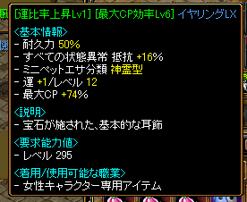 どうも、装備耳を変えてみました('A`) さりげない・・・運比イイw1Mだったしww 結構良耳だと思うんだがなぁ~でもやっぱ、分子は2がいいよねぇ(-ω☆)イヤリングLXは高レベルのHP耳としては非異次元だと一番コスパが良かったハズ。全ての状態異常抵抗はウマイwギル戦向けUのさりげないOP・・・デビネク…ダメ20%ジェノ…光&闇の属性ダメアメジ…属性抵抗とカリスマ+20アンク…状態抵抗リビラ…敏捷+50