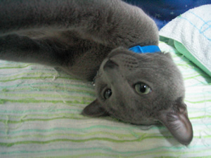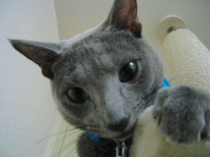 ベッドに寝転んでいるところを撫で回していると、時々手にじゃれて噛み付いてきます。にゃにゃにゃ痛いけど可愛い~~楽しい~♪枕の下になんかある?よくベッドの上で遊んでいるので、シーツが引っ掻かれてぼろぼろです・・・結構かわいい色で好きなんだけどな~。