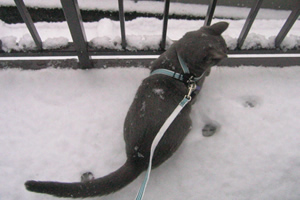 とうとう東京でも雪が積もりました。なんでも、センター試験の時は天気がよくないみたいです。いつもはゆっくり寝ているのだけど、今日はちゃんと起きて雪遊び準備!久し振りに、カモ君にハーネスをつけてベランダに出てみました。意外と怖がりもせず、興味しんしんで偵察。ベランダの端から端まで歩いて、隙間からちょっと屋根に降りてみたり。背中にも雪を乗せながら、あちこち歩き回ってました。やっぱりロシアンだけに雪なんてへっちゃらなのかな~?適当に歩いて気が済むと、自分で窓から部屋に帰っていきました。今は大好きなおやつ「小鉢御膳」を食べて、自分のベッドで丸まってのんびり。この「小鉢御膳」は、30gずつのレトルトになっていて、とても使いやすいのです~。普通の缶詰だと、いつも小分けにして冷凍しなくちゃいけないのだけど、その手間もないし、毎回開けたてをあげることができるのだ。カモ君もお気に入りみたいで、よく食べてくれます。さて、それでは私もお昼寝しようかな~。