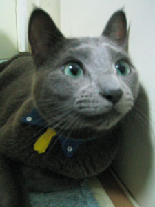 ひと目みて、あまりにかわいくて衝動買い~!!「ちょこタイ猫ギャング首輪」だって。しかもポイント10倍なんだもの。てへ。おしゃまなボタンダウンに、キリッとしたネクタイ。もちろん、青に黄色ネクタイのを購入~。カモ君はギャングになっちゃうのね。ロシアンというより、イタリアンみたいかな?こんなお洒落なのに、強くひっぱると外れる安全首輪なのです。首輪がちょっと汚れてるかな~、と思ってたので、衝動買いだけど、まあ良しとしましょう!誰かお揃いにゃんこはいないかな~。