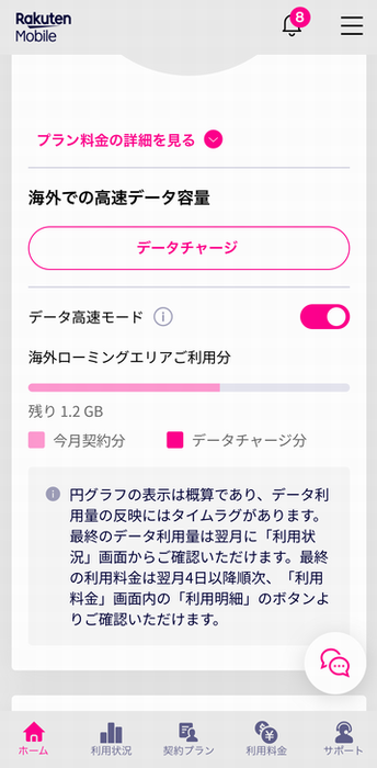そういえばイギリス旅行の時はauだったので、au海外スマホ利用アプリを予約したのですが、今回調べてみたら、楽天モバイルは一ヶ月につき2GBの、海外での高速データ容量が付いている事を知りました。容量残は、楽天モバイルアプリで簡単に見られます。今回使った容量は、丸3日で0.8だったので、残りは余裕の1.2GBでした。いろいろ便利な楽天モバイルです。