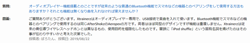 やはりbluetooth機能の Aeropexの方がレビューが多いみたいだけど、
