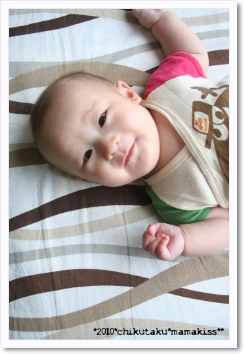 日に日に成長してます。 かれ。 4ヶ月半で寝返りマスターし、最近は床に寝かせて置くと、部屋を縦横無尽に転がり回ります。 しまいには、顔面をついたまま、お尻を上げたり足を曲げたりして微妙にずりばい的に移動し始めます。 起きてる時間も長くなったし、いろんな表情ができるし、オムツもMサイズに。 たっくんは、お世話大好きで、毎日みーのんと小さな約束をしています。 みみりん(みぃくんのことをたっくんはこう呼びます)、大きくなったらおててつないでパパのとこに一緒に歩いて行こうね。 とか みみりん、大きくなったらおだんごふたつあげるね。 とか まぁイロイロ。 みぃくんに話しかけるたっくんの優しい声がかわいくて。 手をつないで、あちこち一緒に遊びまわる二人を想像するのが楽しみで、夜中の授乳も、拓海のトイトレもがんばれちゃうママでした。