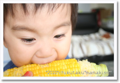 風邪引きたっくんにNちゃんがゆでたてとうもろこしとお手紙を。 どうもありがとう☆ すっごい顔して食べました。