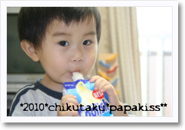 たっくん、復活!です。 元気に大好きなクーリッシュ食べています。 少し前からバニラ味がブームのたっくん。 たくさんの量を食べられないし、溶けてもだらだらと手にこぼれないので クーリッシュ、お気に入りです。 意外と神経質で、口の周りや、手にアイスのべたべたが付くと 「ティッシュくださああああいっ」と絶叫します・・・。 男子なんだから、多少汚れてもへっちゃらでいてくれたらいいのに・・・。