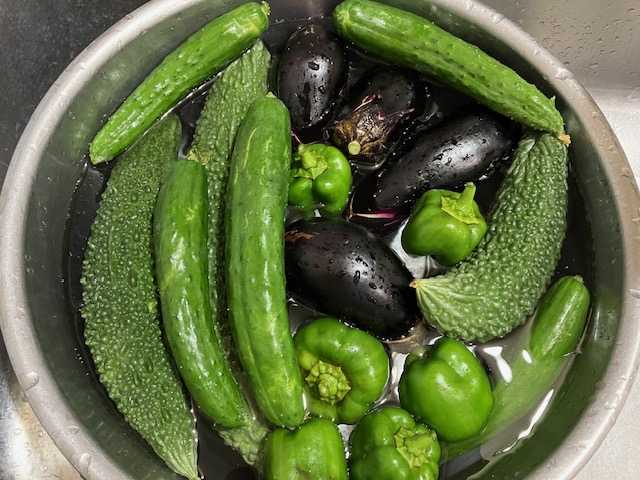 ◇昨日の収穫野菜です。キュウリの本数が減っています。