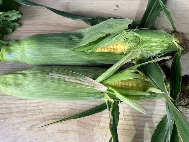 ◇一昨日試し取りしたトウモロコシが、よくできていたので、又、2本収穫しました。実がきれいで虫食いもなくつやつやしています。