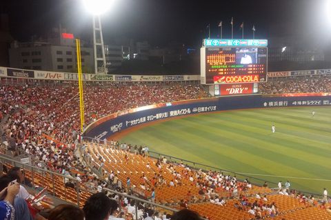 先週末に横浜へ出張してきました。仕事が終わって、ホテルにチェックインして、すぐに横浜スタジアムへ・・・横浜スタジアムには、まだ昭和の時代で、横浜大洋ホエールズだったころに阪神戦を3回見てます。25年ぶりかな・・・ほんとは、西武ドームへ行きたかったのですが、時間的に無理だったので・・・セ・リーグの優勝が決まりそうな日に、最下位とCS進出がほぼ絶望のチームの対戦をみるというのも一興かと・・(^_^;)外野席でにわか広島ファンにでもなろうと思ったけど、人が多そうで断念。日替割(ひがわり)で、内野指定席の当日券が一律2,000円割引というのをやっていて、21日は金曜日で男性なら誰でもOKということで、外野自由席の1,800円より安い、内野指定席Bの1,500円で入りました。席に着いたのは、2回の裏でしたが、入ってみてわかりました、ガラガラなんですね、内野指定席Bは!外野自由席は満員でしたけど・・のんびり野球を見るには、お得としか言いようがないんですが、さすがに最下位のチームだと、ここまでやってもガラガラ・・・DeNA-広 島 22回戦試合の方は、5回を投げて1安打無失点の前田健太が降りちゃったので、DeNAが逆転勝ち。9回表に2死1,2塁でエルドレッドが三振で終わり・・・ネクストには前田智徳がいたので、そこまで回して欲しかった!