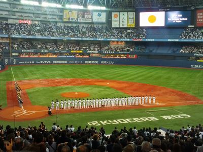 土曜日は京セラドーム大阪の侍ジャパンの壮行試合を見に行って来ました。■侍ジャパン壮行試合 ― スポニチ Sponichi Annex 野球6時30分試合開始の予定でしたが、実際にプレイボールがかかったのは、38分くらいでした。無人のグラウンドへ現れたSMAP中居と炭谷捕手だけの「始球式」は正直いらんかったと思います。自宅に帰ってテレビの録画を見てわかりました。テレビ中継に合わせて進行していたのだと・・・試合途中にも、何かを待ってる感じでプレイをコールしない審判に「?」となりましたが、やはり7時ちょうどと7時半過ぎのCMあけを待ってたのかと・・・予選ではこんなことは出来ないんだろうけど、テレビ局の都合で進行するのは勘弁してほしいですね。昨日の試合もテレビで観戦しましたが、イチローもダルビッシュもいないので、このメンバーで大丈夫なのか不安ですね。日曜の試合はスタメンを変えてましたが、阿部は不動でしたが、去年の成績を見ればそうなるんだろうけど、今の状態なら正捕手で使うなら下位にするか、4番ならDHでいいかなと・・・遊撃は坂本より、鳥谷か松井の方がいい気がするなぁ・・・外野も、糸井・長野・中田で良いんでないかと・・内川は、23日の試合でレフトフライからのタッチアップを本塁死に出来たけど、あれは中継してたし、豪の選手が足が遅かったから・・中田ならダイレクトで刺せたんじゃないかなぁ・・西武ファンとしては、牧田投手しか試合で見られませんでしたが、三者三振で嬉しかったですね~あとは、涌井さんが11番を付けていたのが印象に残りました。11番といえば、一番はダルビッシュですが、西武なら岸投手ですから・・・まだ投げてない涌井投手は、明日の阪神戦で見られるんでしょうか?