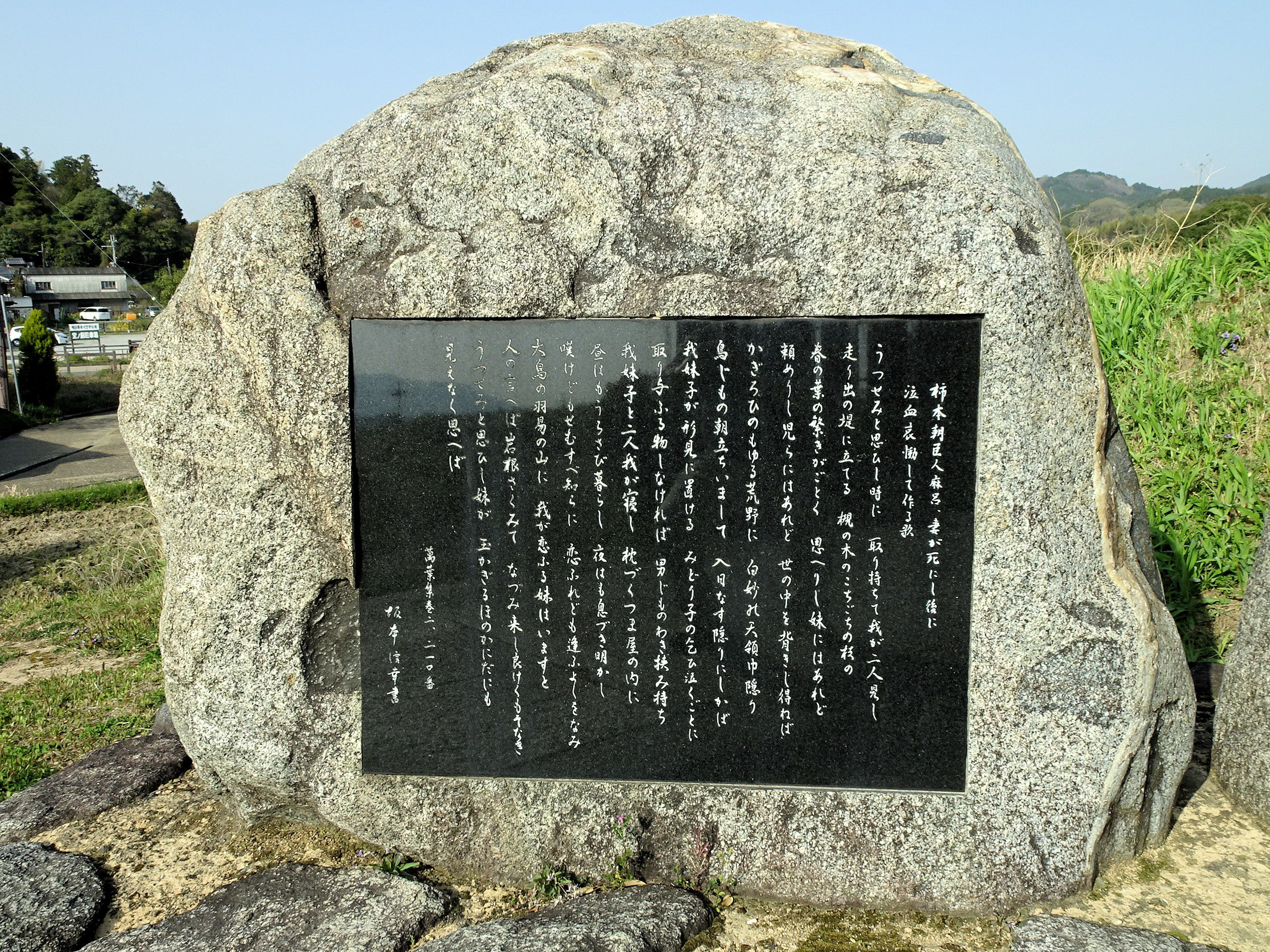 奈良県明日香村、橘寺の門前に万葉歌碑と共に