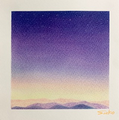 少し秋の気配を感じた今朝✨夏生まれの私は、夏が行く寂しさを感じる季節になってきました。夏を満喫出来ましたか?~~~~~~~~~~Ayukoさんが来てくださいましたAyukoさん 星に願いを~冬野サザンクロス パステル和アート私も久しぶりに描くモチーフでした。受講生さん、いつもそうなのですが、とても優しい色合いに仕上がりました✨✨ パステル和(NAGOKI)アートのお手本は私の手元に50種類くらいあります。日本パステルホープアート協会創始者の細谷代表が考案されたお手本です。描けない、絵は苦手と思っている人にも、無理なく描けるように考案されています✨ほんとに素晴らしいお手本の数々に、頭が下がります。~~~~~~~~~~名古屋でパステルアートの教室「ハッピーシオン」★パステルアート体験受付いたします(要予約)★講座日程のご案内 「ヒーリングアート・フォローアップ講座」パステル和(NAGOMI)アート講座ヒプノセラピー各種お申し込み、お問い合わせはハッピーシオンお問い合わせフォーム からお願いいたします