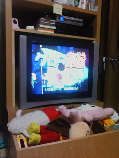 テレビが壊れた・・・・・テレビの横に貼られたシールを見てみると「88」とか書いてあるのでひょっとしたら1988年製かもしれない。うーむ、20年かぁ・・・・よくがんばったぞ! テレビくん。と、いいつつ、やはりテレビが見られないでは困るので新しいテレビを物色する事にした。新聞折り込みチラシを見ると今は、大画面液晶(プラズマ?)テレビのオンパレードだ。お値段も10マンくらいから、それこそ30マンちかくするのもある。うむむ・・・・・さて、どうしようかなぁ・・・・・と、悩んで手に入れたのはコレです。なんと、念願のトリニトロンを手に入れました!ばんざ~い \(^o^)/ワーイ\(^o^))/…\((^0^)/ワーイ説明しよう。トリニトロンとは1967年にソニーが開発したアパーチャーグリル方式のブラウン管。1本の電子銃から3色の電子ビームを出力する、「1ガン3ビーム方式」を採用しているため、電子銃の口径を大きくすることが可能で、シャープなフォーカスが得られるといった特徴がある。当時一般的だったシャドーマスク方式のブラウン管に比べ、低輝度でもコントラストが高く、画質面で非常に有利であった。出典: フリー百科事典『ウィキペディア(Wikipedia)』いやぁ・・・・欲しかったんだよなぁ。トリニトロン。(パソコン用モニターとしてダイヤモンドトロンは使った事があるが)今までは高嶺の花で手が届かなかったのであった。しかも、購入価格は5000円であった。はっはっはっはっは・・・・・・・・・・と、ここまでお読みになった方は気がつくであろう。今頃、ブラウン管のテレビなんて買ったの?もうすぐ地デジがはじまるのに?頭おかしいんじゃないの?まぁ、普通の方はそう思うであろう。しかし、ブラウン管と言っても、ただのブラウン管じゃないよ。世界最高のブラウン管なのだ。ひょっとしたら手抜き液晶より画像がキレイかもしれない。 (負け惜しみかも)しかも、地デジに切り替わってしまうまで、まだ3年もある。あわてて換える事はない。 (デジタルだとコピーに制約あるしね←裏の声)決定的だったのは、テレビが必要な居間でテレビを置ける空間に制約があるのだ。当たり前だけど、横幅が同じ場合4:3のブラウン管と16:9のワイドテレビだとワイドテレビの方が高さが低い。つまり、ワイドテレビの方が画面が小さいのだ。地デジがどうのこうの言っているが現在、放映されているテレビ番組のほとんどが従来の4:3比率である。これを楽しむのにワイドテレビは必要ない。むしろ、画面が小さくなるのであった。今の大画面ワイドテレビは妙な機能があって普通のテレビ画面(4:3)を(16:9)に引きのばして映している。しかも、引き延ばし方が巧妙なので気がついていない方も多い。私に言わせると高いお金払って歪んだ映像を見なくてもいいんじゃない。と、いうわけで新しいテレビくんに大満足の私であった。人は、私の事を「時代の流れに逆らう男」と呼ぶ。はっはっはっはっは・・・・・・・さぁ、たまごっちでもするか。