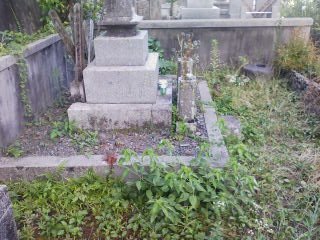 本日、8月13日・・・・世間的にはお盆です。と、いうわけで、世間並みにお墓掃除に行ってきました。・・・・・・・・・すると・・・・・・原野に戻っていました。(笑)ははははは・・・・・笑いしかでません・・・・まぁ、お墓掃除をさぼっている私が悪いのですが・・・・ちなみに、我が家のお墓。四隅に木が植えてあります。その木が年々大きくなり、根をはりついにはその根が石垣や墓石に下に侵入し、石垣や墓石が動き始める事態になってきました。墓石はともかく、石垣が崩れて誰かに怪我をさせる恐れもあります。そこで、去年の冬にこれらの木を切り倒したのでした。・・・・・・・・・ところが・・・・・再生してるじゃん・・・・( ̄□ ̄;)!!こちらも・・・・こちらに関しては、切り倒した形跡もなくなっている。(°◇°)~なんちゅーか・・・・恐るべき、木の生命力。と、いうわけで、2時間かかって、草ひきしました。取れた雑草は、大型のゴミ袋4杯です。ふう (;^_^A アセアセ・・・いちおう、復元されたお墓。それにしても、疲れた。すでに一日の体力を使い切ったような気がする。そろそろ、エンジン付の草刈り器が欲しい今日この頃。(´ヘ`;)ハァ