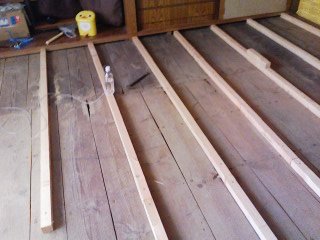 我が家の歴史は大正時代までさかのぼるらしい。しかも、その頃に買った家だという事なので建てられたのはさらに前。ひょっとしたら築100年以上経っているのかもしれない。それくらい、我が家の建物は古いのであった。当然、ほとんどの部屋が和室で畳である。さて、娘が今年から小学生になった事もあって娘のお友達が遊びに来る事も多くなった。それはいいのだが、いろんな部屋でどたばたするのはあんまりうれしくない。そこで、娘の部屋というか、子供部屋をつくる事にした。使っていない和室を使うことにしたのだがマイ奥さんの希望でフローリングにする事になった。畳を全部はずして、角材を打ち付ける。その上に床材を張り付けるのだが、ちょっとした問題が生じた。部屋の床面が水平じゃないのだ。手作りの水平器(ペットボトルでつくった)で計測してみると一番高いところと、一番低いところの高低差がなんと4.5cmもあった。しかも、なだらかに傾斜しているのではなくでこぼこに傾斜している。うーん・・・・どないせーちゅーんや!かくして、私の休日は床工事に明け暮れるのであった。それにしても、俺大工でも食っていけるかも?