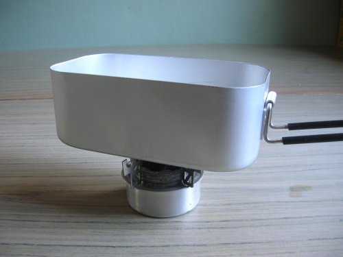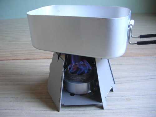 今回はウッドストーブとしてではなく、アルコールストーブの風防兼五徳としての実験です。