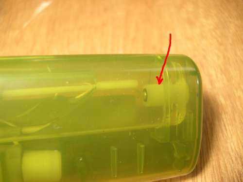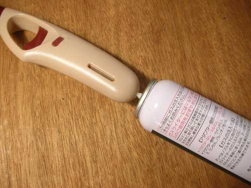 本体が透けて見えるタイプの物はこうやって中の液化ガスの入っているタンクを見ます