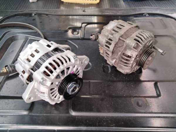 取り外したオルタネーターとAmazonで買ったリビルトのオルタネーター。