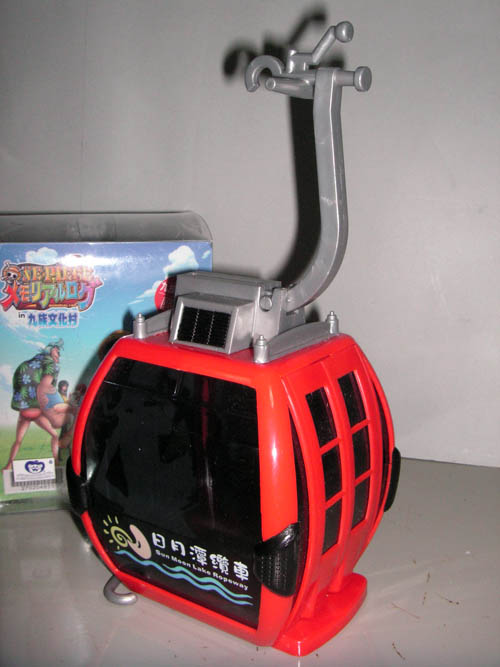 ネットオークションでゴンドラの形をした貯金箱を発見。他に誰も入札する人がいなくて落札できました。今までこんな商品みたことがなかった。 画像の反対側に「ワンピース」というアニメのキャラが描かれている。そして箱には「九族文化村限定」と書かれていた。そんな施設聞いたことがないので調べたら、なんと台湾にあるテーマパークの事だった。どうもその九族文化村という施設にはロープウェイがあり、「ワンピース」のキャラクターが使われていて、これはそこのおみやげ商品のようです。 最近よくみるスイスCWA社の典型的なゴンドラの形をとてもよく再現していると思います。他にも黄色と青がありそうです。これを沢山並べて吊ったらすごく雰囲気でますよね。台湾に行きたくなりました。