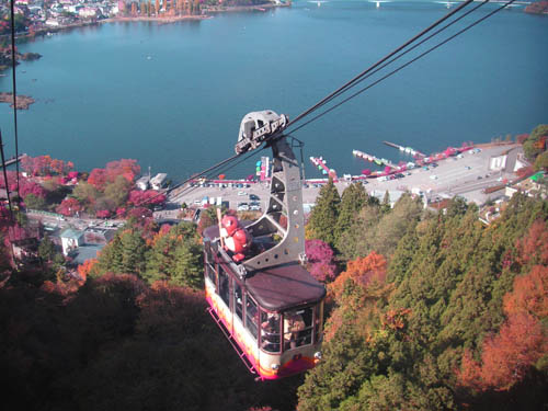 昨日は河口湖にある天上山公園カチカチ山ロープウェイに乗ってきました。ここは何度も訪れていますが紅葉シーズンに来たのは初めてかもしれない。 ちょうど紅葉まつりがおこなわれていたようで平日なのに観光客が一杯で、ロープウェイも大人気!駅には列ができていてピストン輸送でひっきりなしに動いていました。 いつも思うのですが、展望台よりも山頂駅から眺める景色が好きです。 そしてお天気がよかったので、展望台からはこんなにハッキリと富士山が見えました。過去何度か来てるけど、これほどよく見えたのは初めてでした。ロープウェイが目的で景色は二の次なのですがなぜか富士山ってキレイに見れると嬉しくなるから不思議です。 午後から用事があり東京に戻らなければならなかったので、午前中2時間ばかし、2往復して帰りました。