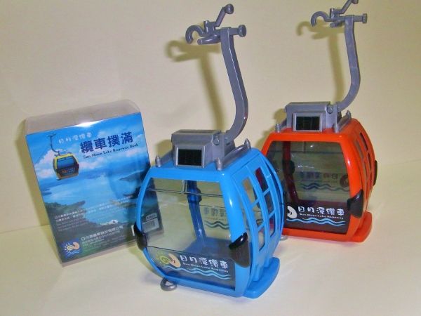 台湾にあるSun Moon Lake Ropeway(日月潭纜車)のおみやげ品にこのゴンドラの形をした貯金箱があります。縦10cm×横10cm×幅8センチぐらいのプラスチック製ですが、これがけっこうCWA製のゴンドラを模してあっていい感じなんです。自分はネットオークションで赤と青をゲット。あと黄色があれば全部揃うのですが、まだ入手できていません。日月湖と九族文化村を結んでいて2010年にオープンしたようです。スリリングで雄大な景色が楽しめるルートのようなので、いつか乗りに行きたいものです。