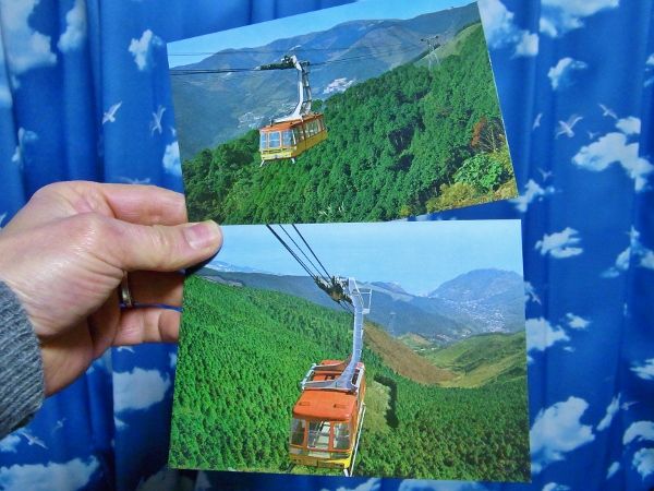 先日、熱海高原ロープウェイの絵葉書を2枚ゲットしました。自分がロープウェイの絵葉書を集めだして10年以上経ちますが、今まで一度もこの絵葉書に遭遇したことがありませんでした。なんか開業してからわずか3年ぐらいで廃止になってしまった路線なので、当然絵葉書も少ないわけです。最近、この熱海高原ロープウェイのお土産品を包む包装紙も入手できました。もうちょっと早く手に入っていれば「ロープウエイ探訪」に載せられたのに残念です。