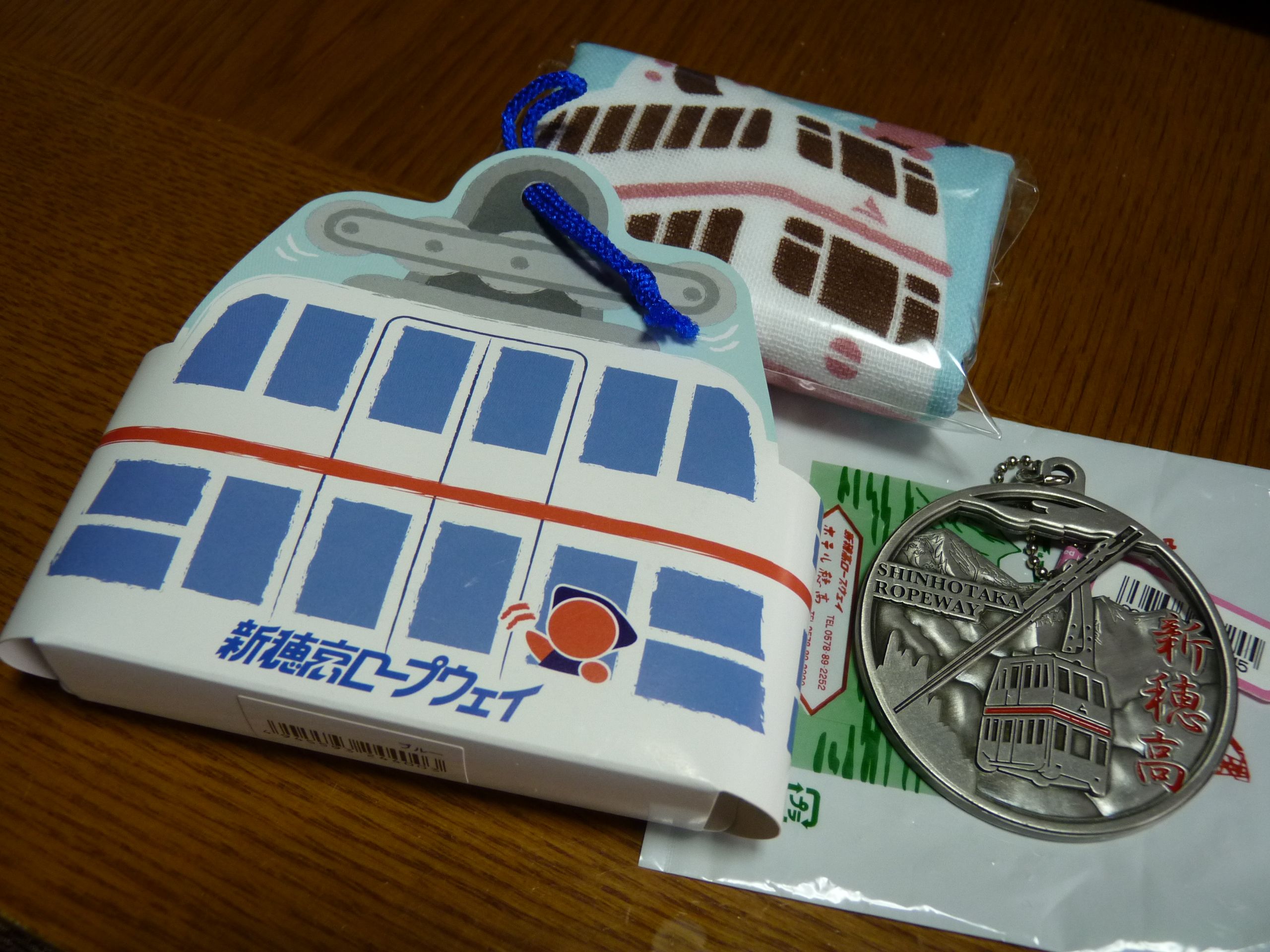 今週末に舞台が控えていて、ロープウェイに乗りに行けない自分を慰めてくれるかのように、新穂高へ行った知人がお土産を持ってきてくれました。ここはロープウェイグッツが豊富で、とても全部買いきれないのが悩みどころ。2年ぐらい前に行ったっきりなので、その知人がわざわざ僕がもっていないような商品を見つけてきてくれました。右側のメダルは結構大きめで、デザインもいいです。これは自分が乗りに行った時はなかったような気もします。左側のハンドタオル?はこのブルーとピンクがあるそうです。中身もいいのですが、自分はこのパッケージが気に入りました。これも以前見かけなかったような気がします。