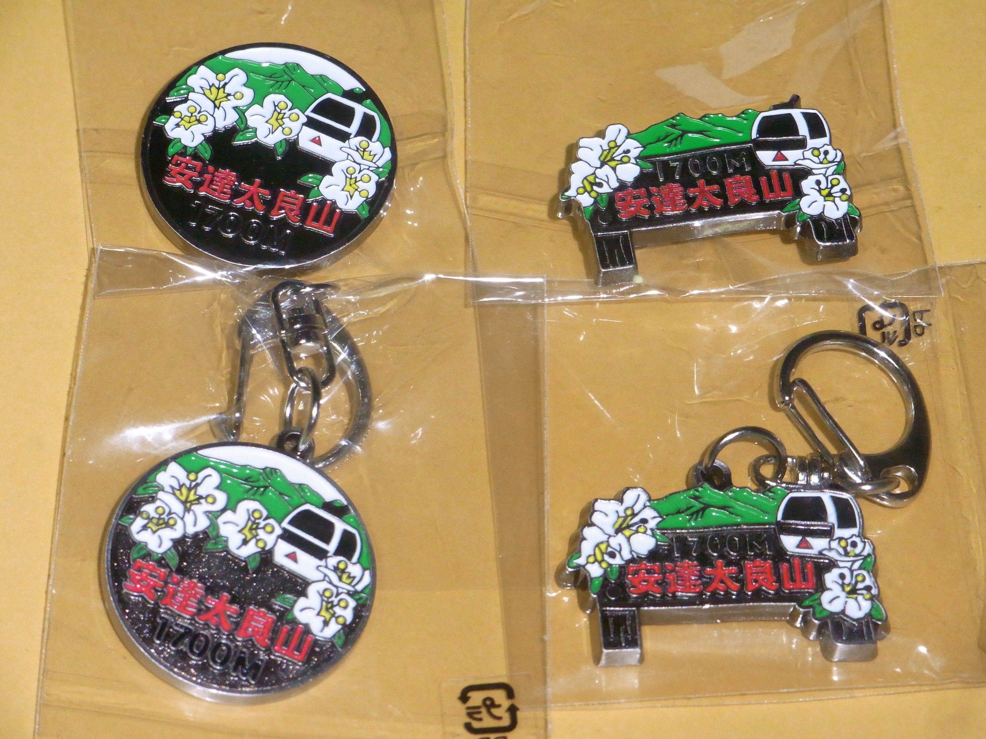 初めて訪れたあだたら山ロープウェイでしたが、本来スキー場の索道なので、あまりロープウェイグッツはないだろうと期待はしていませんでしたが、かろうじてキーホルダー(450円)とバッジ(410円)がそれぞれ2種類ありました。コレクターなので4つ買ったのでちょっと失費。(笑)あとは絵葉書(100円)が1種類だけでした。それより一番気に入ったのは、「奥岳の湯」という立ち寄り温泉施設が近くにあり、そこの売店で売っていた手ぬぐい(500円)のデザインが良くて保存用と使用用に2本買いました。