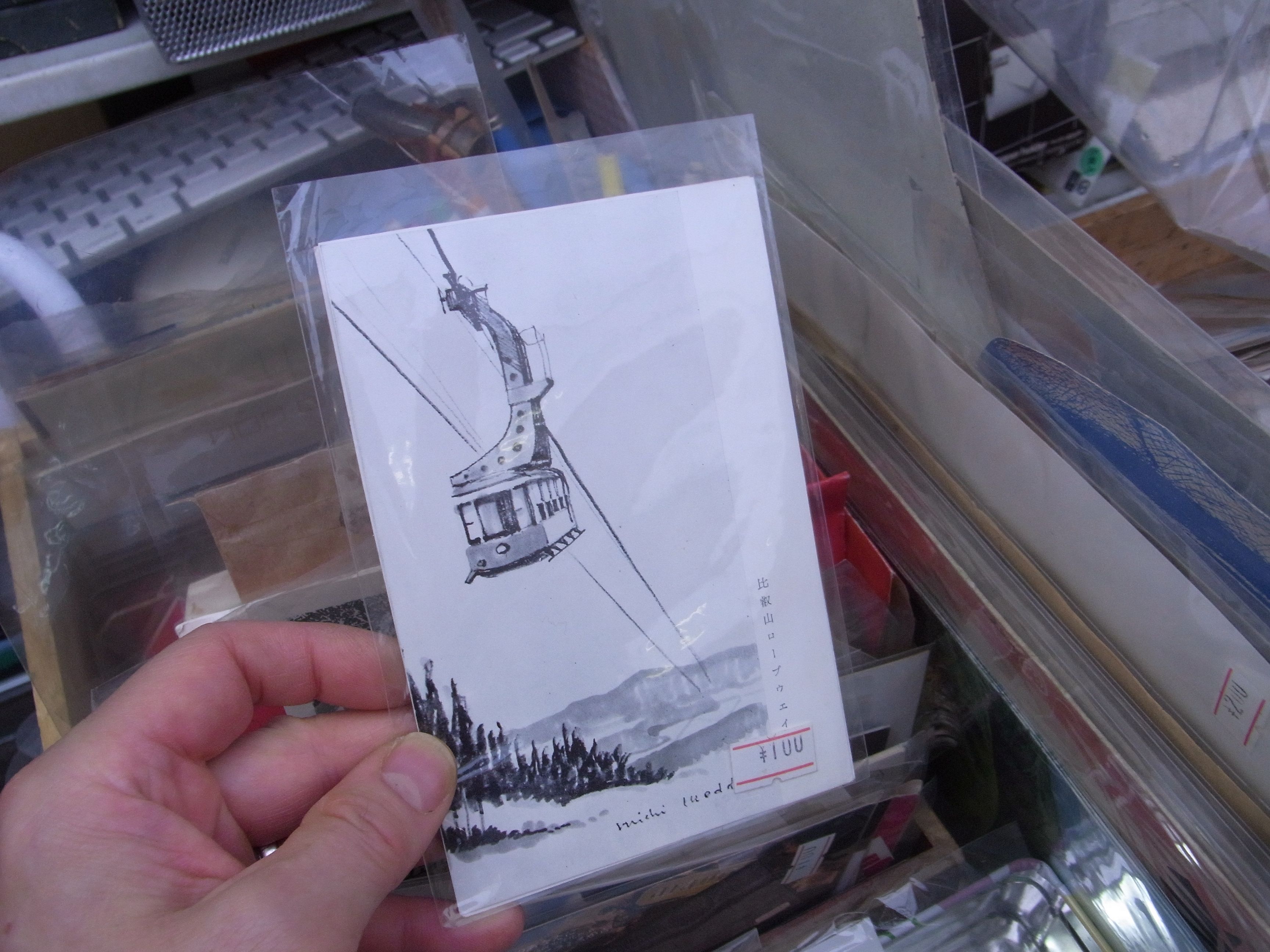 週末に大きな舞台の仕事も終わり、7月に渡米するまでは、ロープウェイに乗りに行く余裕もできそうです。さて、昨日、親友との待ち合わせ時間まで7分ぐらいあったので、自転車で江古田の町を徘徊していたら古本屋を発見。店先に置いてある紙物コレクションのボックスをササっと物色していたら、こんな絵葉書を発見。100円で購入。数分間でロープウェイを探し出す嗅覚は我ながらすごいと思う。この手のイラストの絵葉書もそれなりに集まってきたので、オームページにギャラリーページでも作って全部アップしてみようかと検討中。ちょっとした索道美術館になるかも。