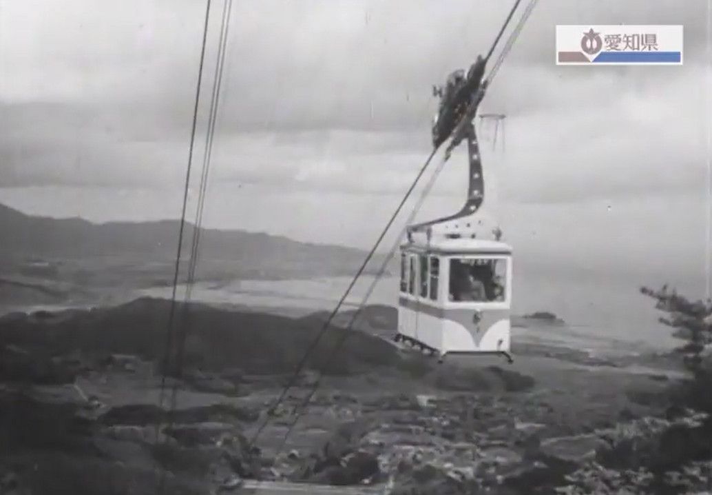 愛知県の古い県政ニュース第137号「国定公園三河湾」に三ヶ根山ロープウェイの動いている場面を発見。2分44秒あたりに出てきます。三ヶ根山ロープウェイは昭和32年11月に開業して、昭和51年に廃止になりました。このニュース映画は昭和33年なので、開業してまもないころです。同じ愛知県の県政ニュースですが、こちらは昭和35年の第166号「国定公園三河湾」というフィルムです。スクリーンがワイドになっています。2分36秒あたりに三ヶ根山ロープウェイが登場します。こちらは山麓駅側からの撮影で、乗っているお客さんの様子がよくわかります。